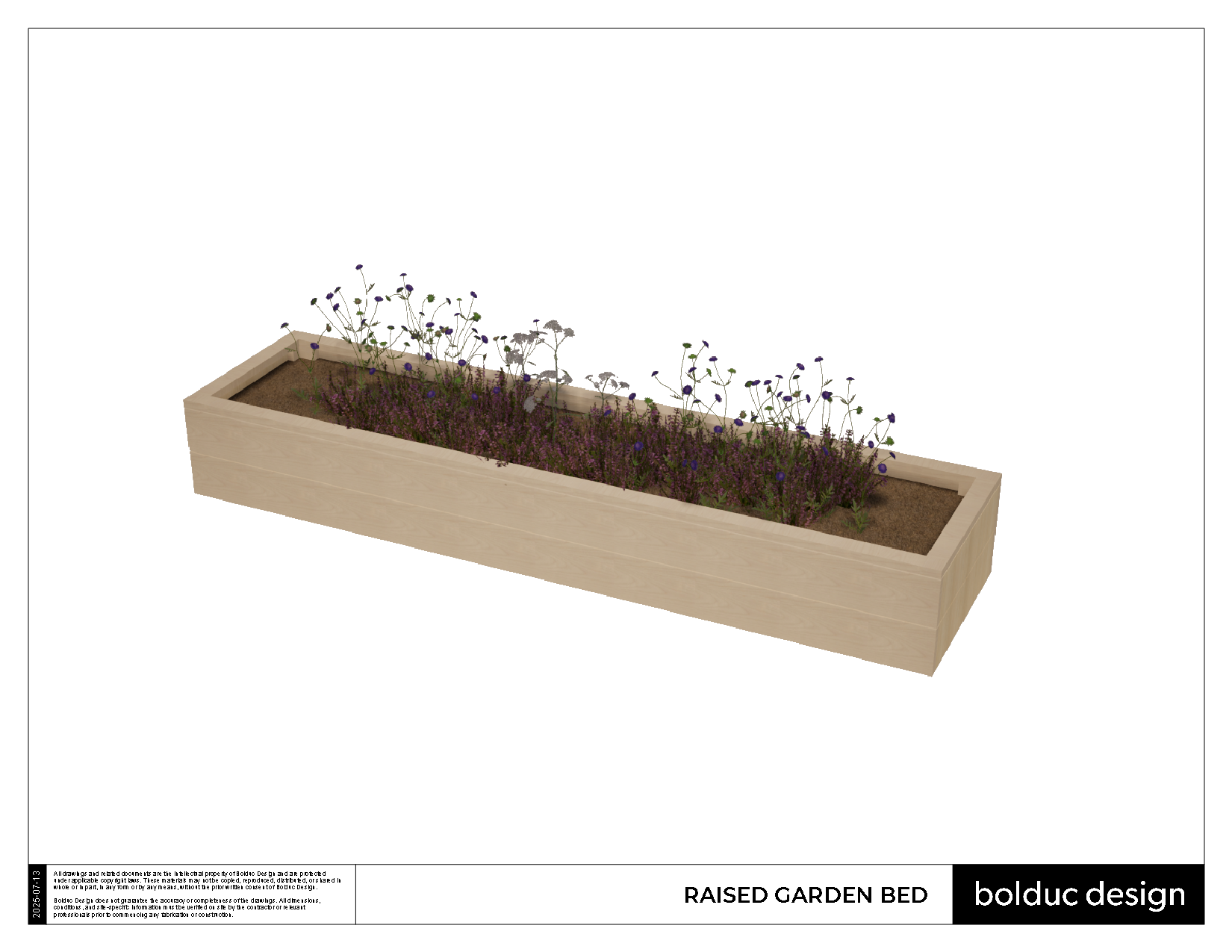 This raised garden bed is constructed from standard pressure-treated lumber, selected for its durability and accessibility. The design emphasizes ease of assembly, with dimensions and joinery laid out to minimize the number of cuts required and allow construction with basic hand tools. Connection details are intentionally simple, focusing on straightforward, repeatable assembly for a functional and low-maintenance result.